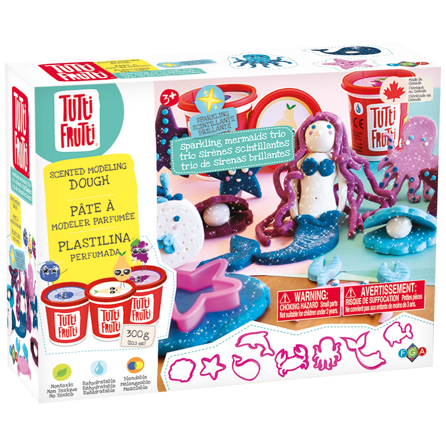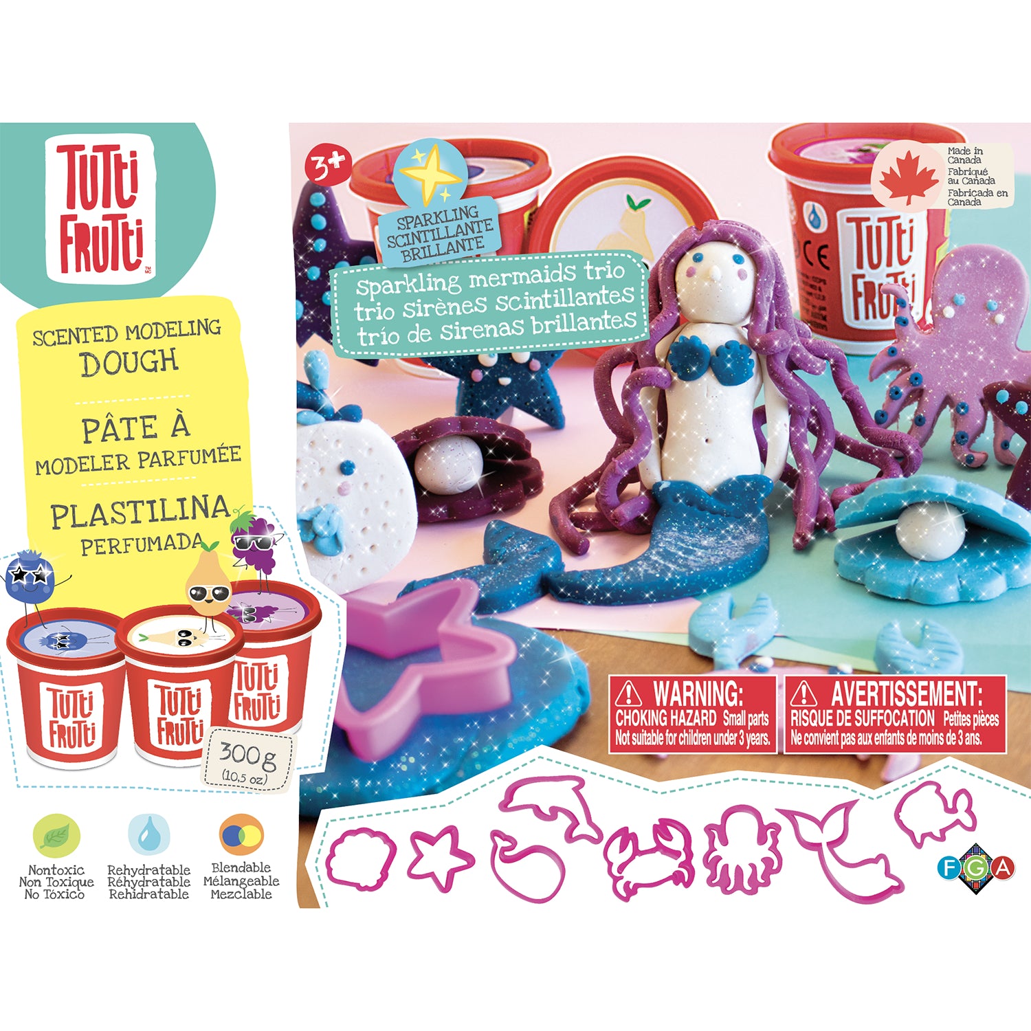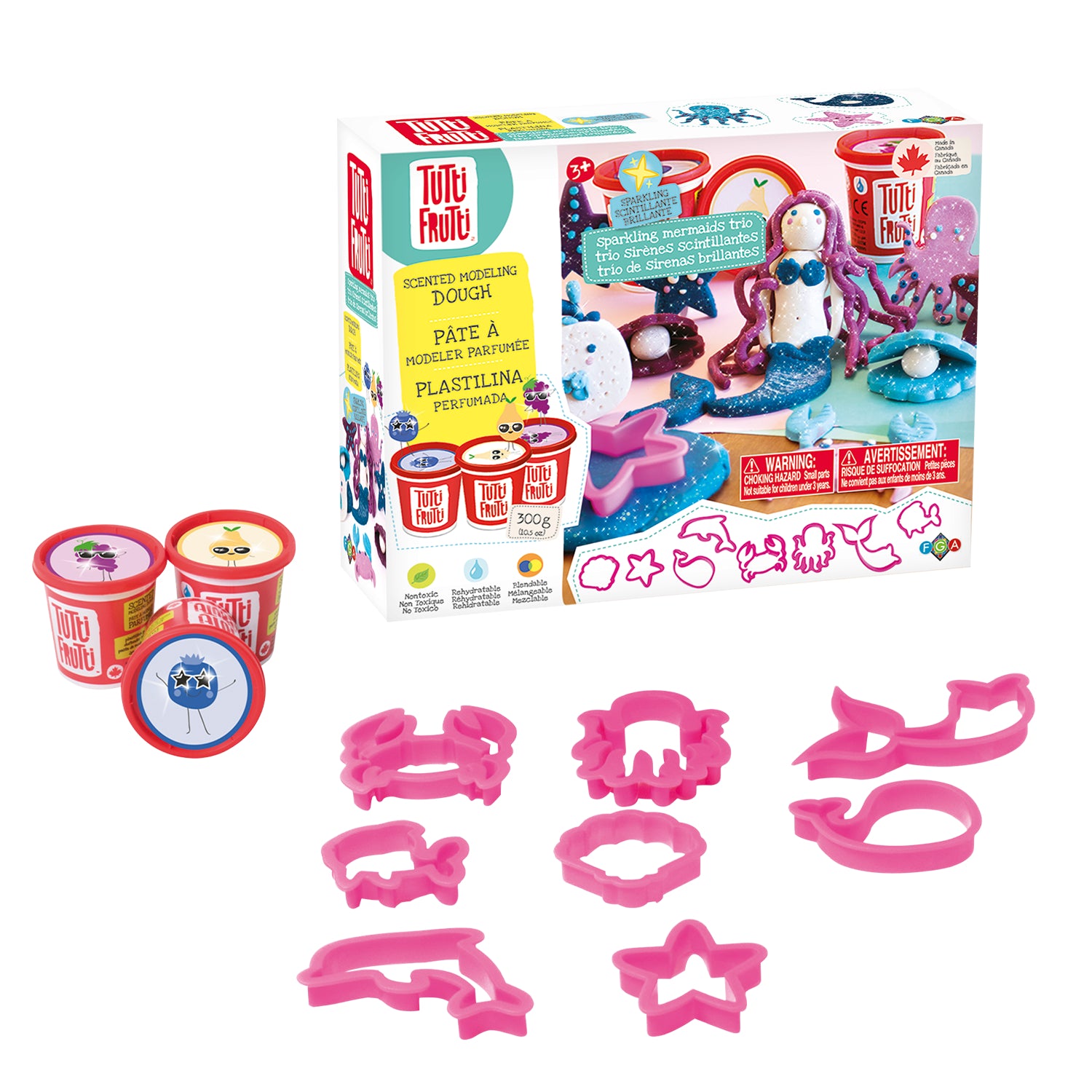 Ideal for parties, playdates, or solo play, the Tutti Frutti Sparkling Mermaids Trio Kit offers endless hours of creative fun. Let your child's imagination swim free with this enchanting and aromatic modeling dough set.